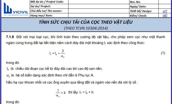 TÍNH SỨC CHỊU TẢI CỦA CỌC THEO VẬT LIỆU – TCVN 10304
